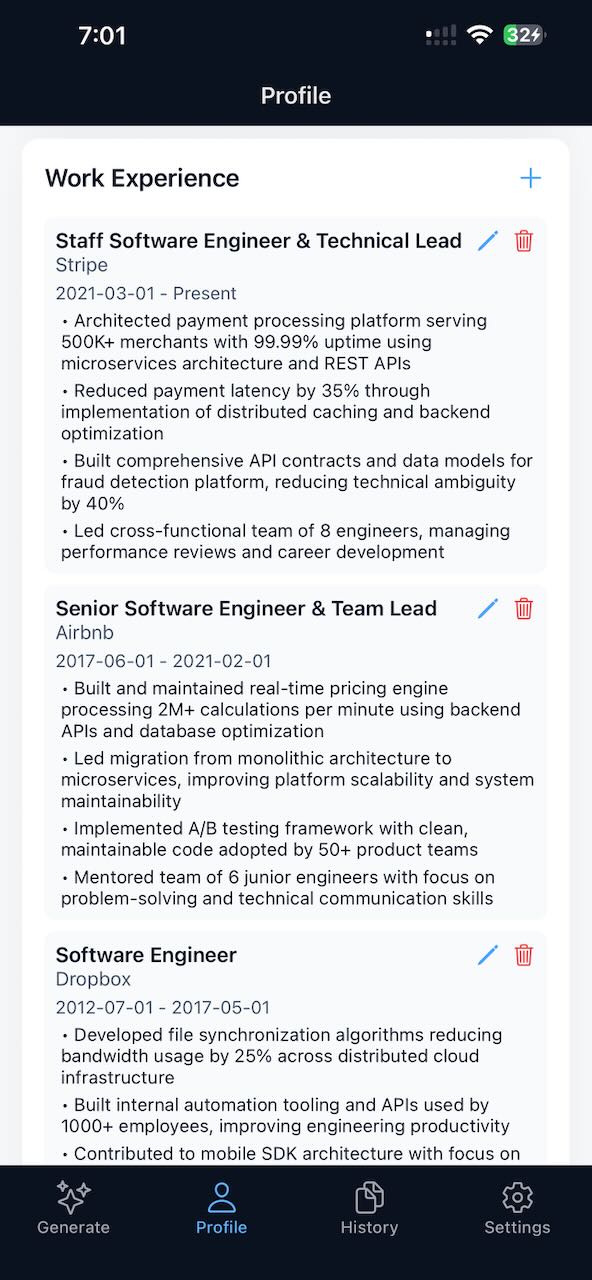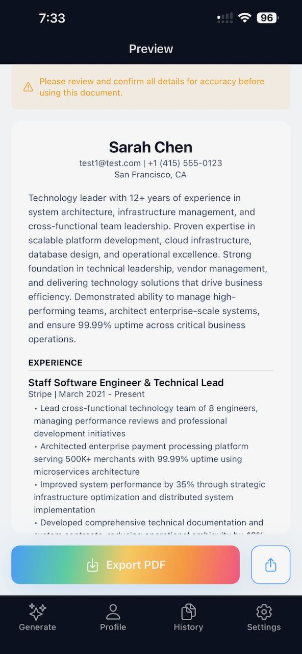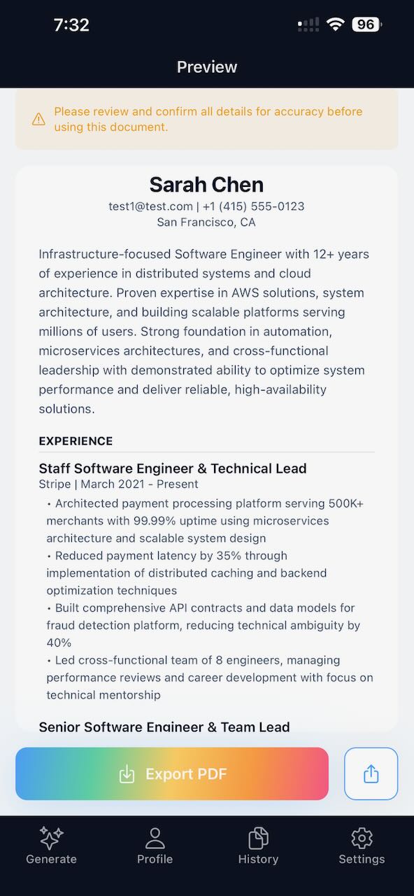 Generate a tailored, ATS-optimised CV for any role by pasting a job description or job link.