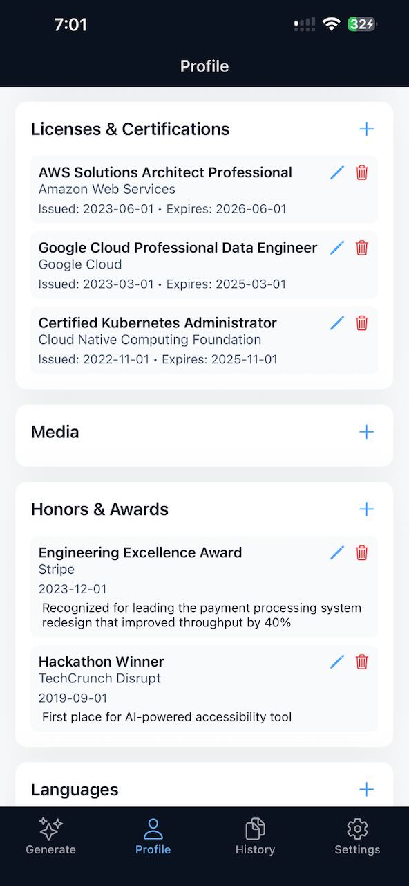 Save your education, work experience, skills, and achievements once. CVly-AI adapts them for every job application.
