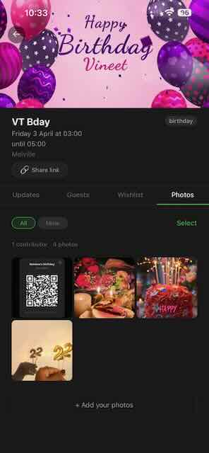 Add a wishlist to your event so guests know exactly what to bring or gift. Guests can browse and claim items, making gifting coordinated and stress-free.